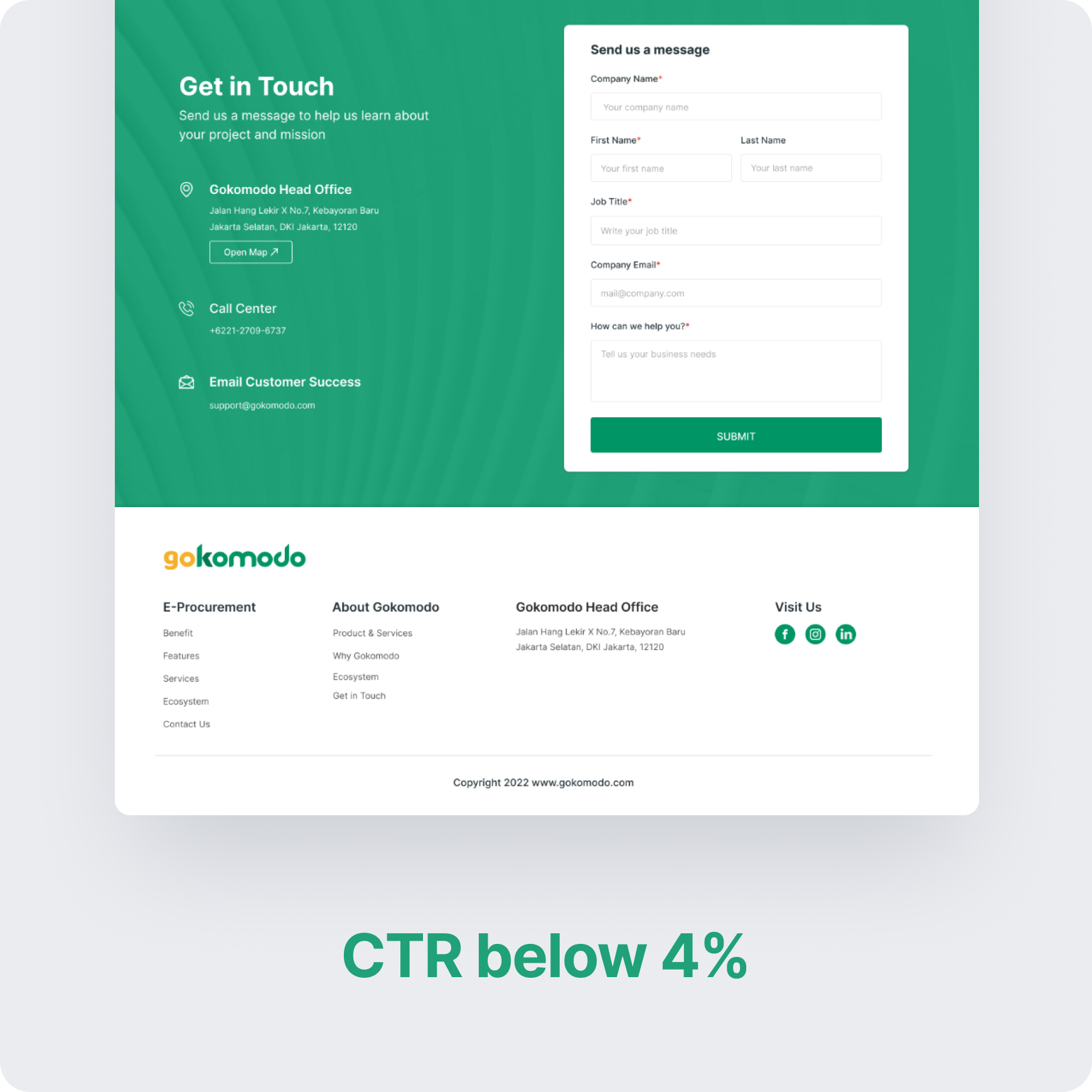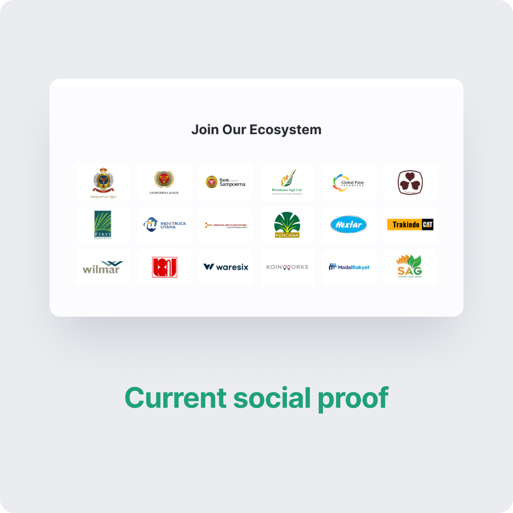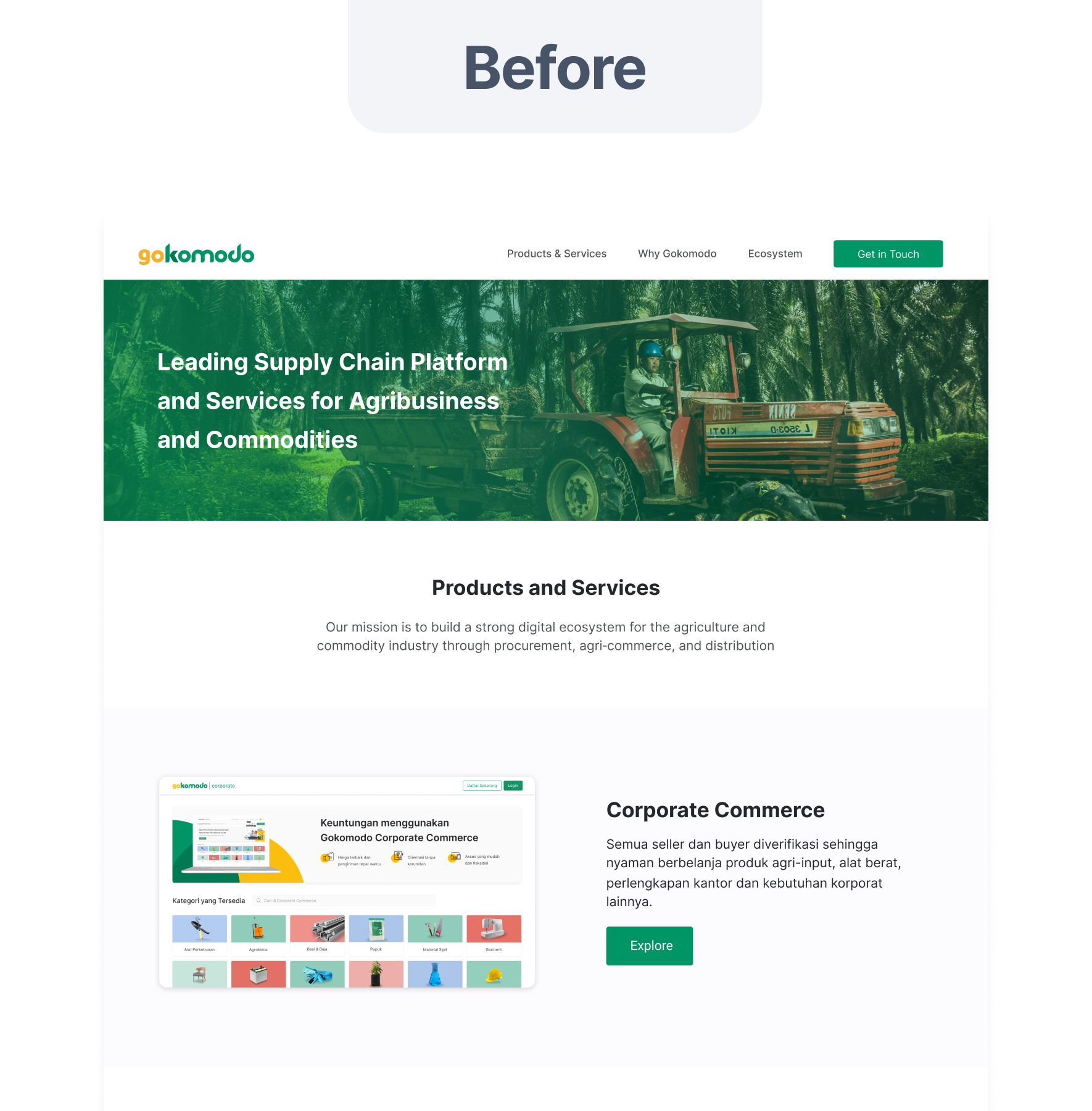 Currently, the website only has the "Our Ecosystem" section as social proof. This will result in a decrease in the percentage of trust potential customers have in Gokomodo as a whole.